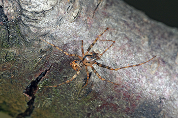 Met wat geluk vind je in deze tijd van het jaar kleine coconnetjes die aan de stam van een boom bengelen. Elk coconnetje ziet eruit als een druppel en lijkt wel omwonden met gouddraad. Het is de eicocon van een gevorkte spinneneter, een bijzonder fascinerende spin. De cocon bestaat eigenlijk uit drie laagjes: de binnenlaag bestaat uit fijne draden, daarrond zitten strakkere en sterkere draden en aan de buitenkant zit iets wat lijkt op goudkleurige prikkeldraad, bedoeld om vijanden op afstand te houden. Ook het feit dat de cocon niet tegen de stam van de boom plakt, maar aan een steeltje bengelt of onder een blaadje, op een afstandje van de stam, is een slimme truc: op die manier geraken roofdieren en stiekeme eirovers niet makkelijk tot bij het ei dat in de cocon zit. Gevorkte spinneneters zijn minispinnetjes. Ze zijn maximaal een halve centimeter groot, maar zijn niet te onderschatten. Ondanks hun geringe formaat, overvallen en eten ze andere spinnen. Ze gaan daarbij heel geraffineerd te werk: een gevorkte spinneneter dringt het web van een andere spinnensoort binnen en tokkelt op de draden om de bewegingen van een gevangen prooi na te bootsen. De nieuwsgierige eigenaar van het web komt aangelopen en ontdekt te laat dat hij in een val loopt: de gevorkte spinneneter valt bliksemsnel aan, dient de prooi een gifbeet toe en zuigt de inhoud van het slachtoffer op. Vooral kogelspinnen worden belaagd door de gevorkte spinneneter, maar ook andere spinnen worden in de luren gelegd: zo bootst een spinneneter soms een mannelijke spin na om een vrouwtje te misleiden. Gaat het vrouwtje in op de avances van de bedrieglijke casanova, dan heeft haar laatste uur geslagen. Deze sluwe en geraffineerde trucs zorgden ervoor dat de gevorkte spinneneter in 2021 verkozen werd tot de Spin Van Het Jaar.
